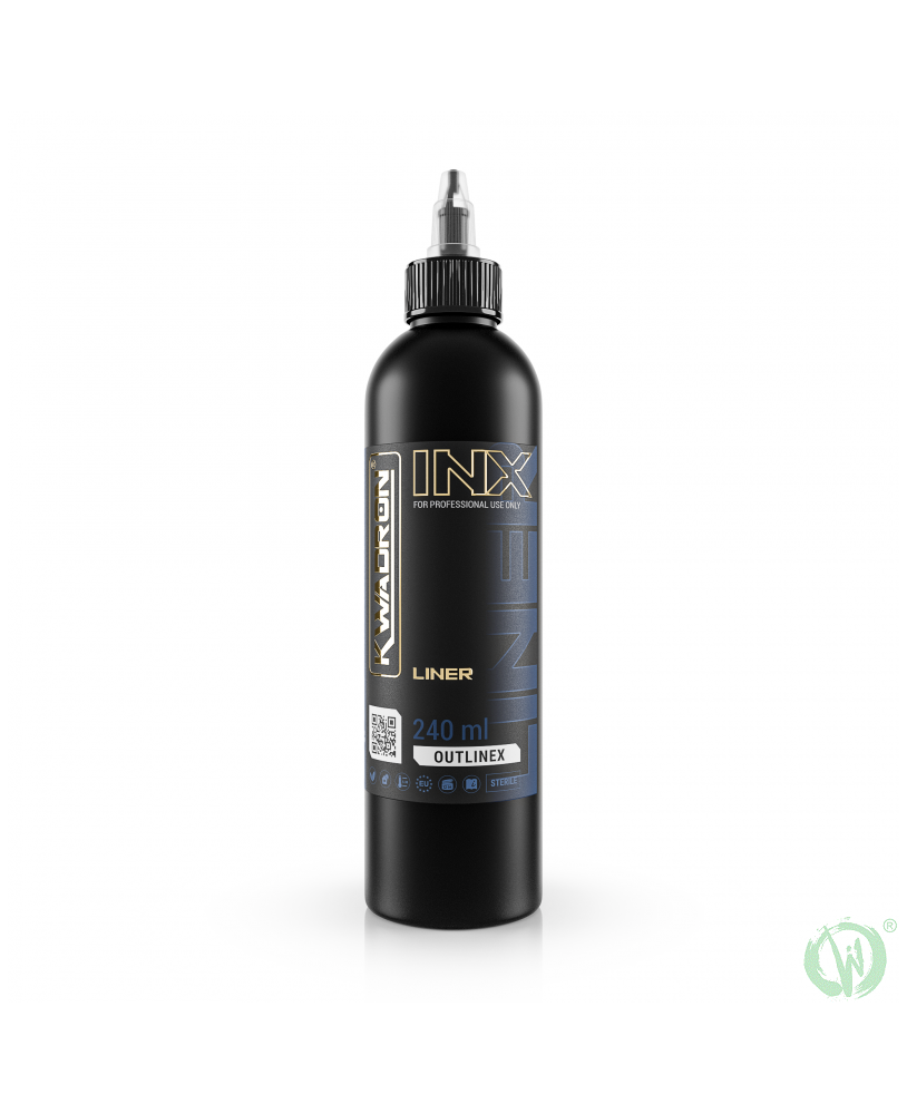 Kwadron INX Outlinex je bil ustvarjen za umetnike, ki pričakujejo popolno natančnost in gladkost pri ustvarjanju dolgih linij. Z barvo Outrlinex tetovirate brez napora, po koži pušča popolnoma enakomerno sled. Idealna konsistenca zagotavlja, da črnilo ostane enako skozi celotno sejo – ne zasuši se v konici, ne kaplja in ohranja enako intenzivno črnino od prve do zadnje sekunde dela. Ta stabilnost in predvidljivost vam omogočata, da se popolnoma osredotočite na ustvarjanje umetnosti.