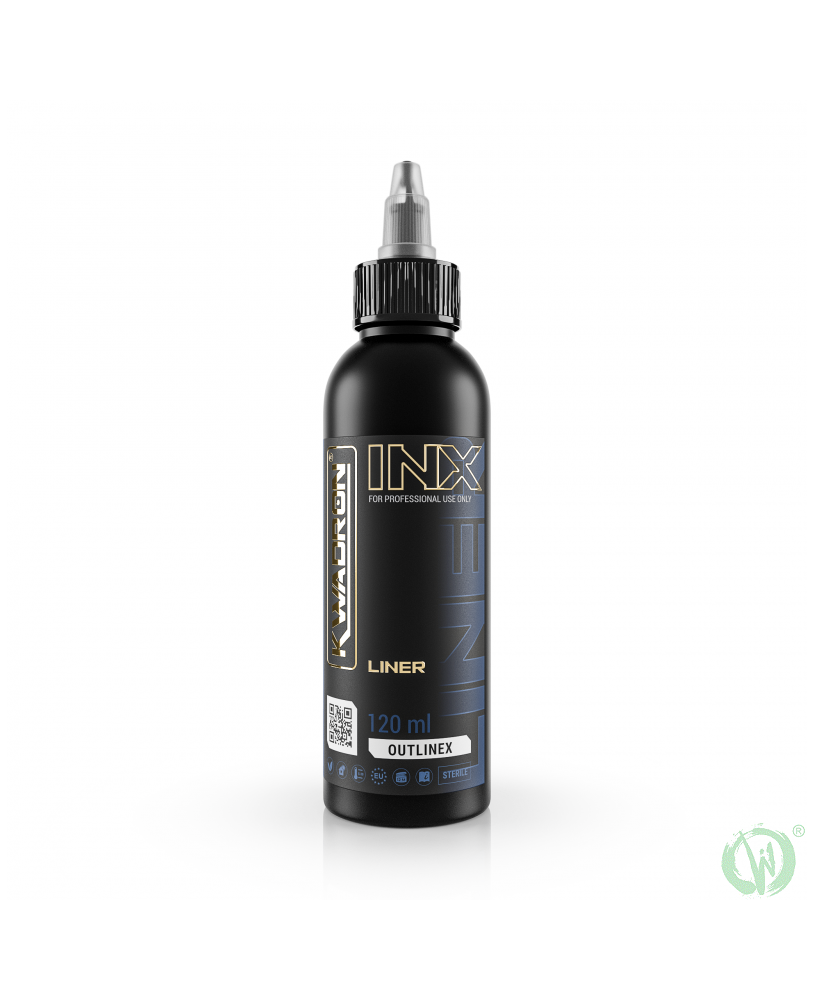 Kwadron INX Outlinex je bil ustvarjen za umetnike, ki pričakujejo popolno natančnost in gladkost pri ustvarjanju dolgih linij. Z barvo Outrlinex tetovirate brez napora, po koži pušča popolnoma enakomerno sled. Idealna konsistenca zagotavlja, da črnilo ostane enako skozi celotno sejo – ne zasuši se v konici, ne kaplja in ohranja enako intenzivno črnino od prve do zadnje sekunde dela. Ta stabilnost in predvidljivost vam omogočata, da se popolnoma osredotočite na ustvarjanje umetnosti.